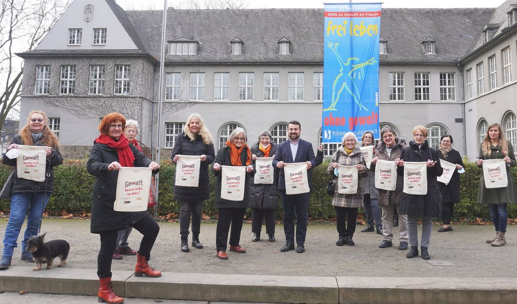 Schon Ende Oktober hatte sie gemeinsam mit den Gleichstellungsbeauftragten und dem Frauenforum aus dem Kreis Unna auf das Thema aufmerksam gemacht und mit den Bürgermeister*innen der zehn Kommunen, Landrat Mario Löhr und den Sparkassen im Kreis Unna ihre Kampagne „Gewalt kommt nicht ins Netz“ vor. So steht es groß auf den wiederverwendbaren Obst- und Gemüsenetzen, die als mehrere tausend Give-Aways zum Kampagnenstart ausgegeben worden sind.