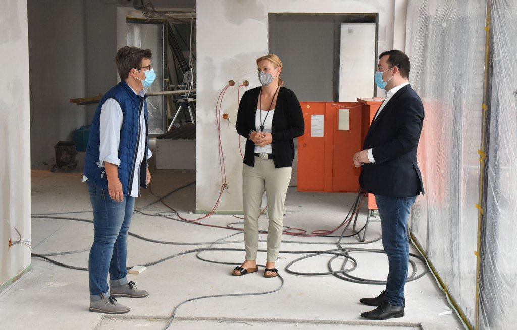 „Wir wollen für die Schüler*innen eine optimale Betreuung gewährleisten“, hob Bürgermeister Dimitrios Axourgos jüngst bei einem Besuch der Heideschule hervor. Er ließ sich von Schulleiterin Julia von Halen und Bettina Austmeyer, betreuende Architektin der Stadt Schwerte, über den Stand des Innenausbaus informieren. Hier wie auch an anderen Schulstandorten in Schwerte „nehmen wir mehrere Millionen Euro in die Hand und investieren das Geld in unsere Schulen. So wird der Bildungsstandort Schwerte gut ausgestattet und weiter verbessert. Eine Investition in diese Bereiche ist eine Investition in die Zukunft“, so der Bürgermeister.