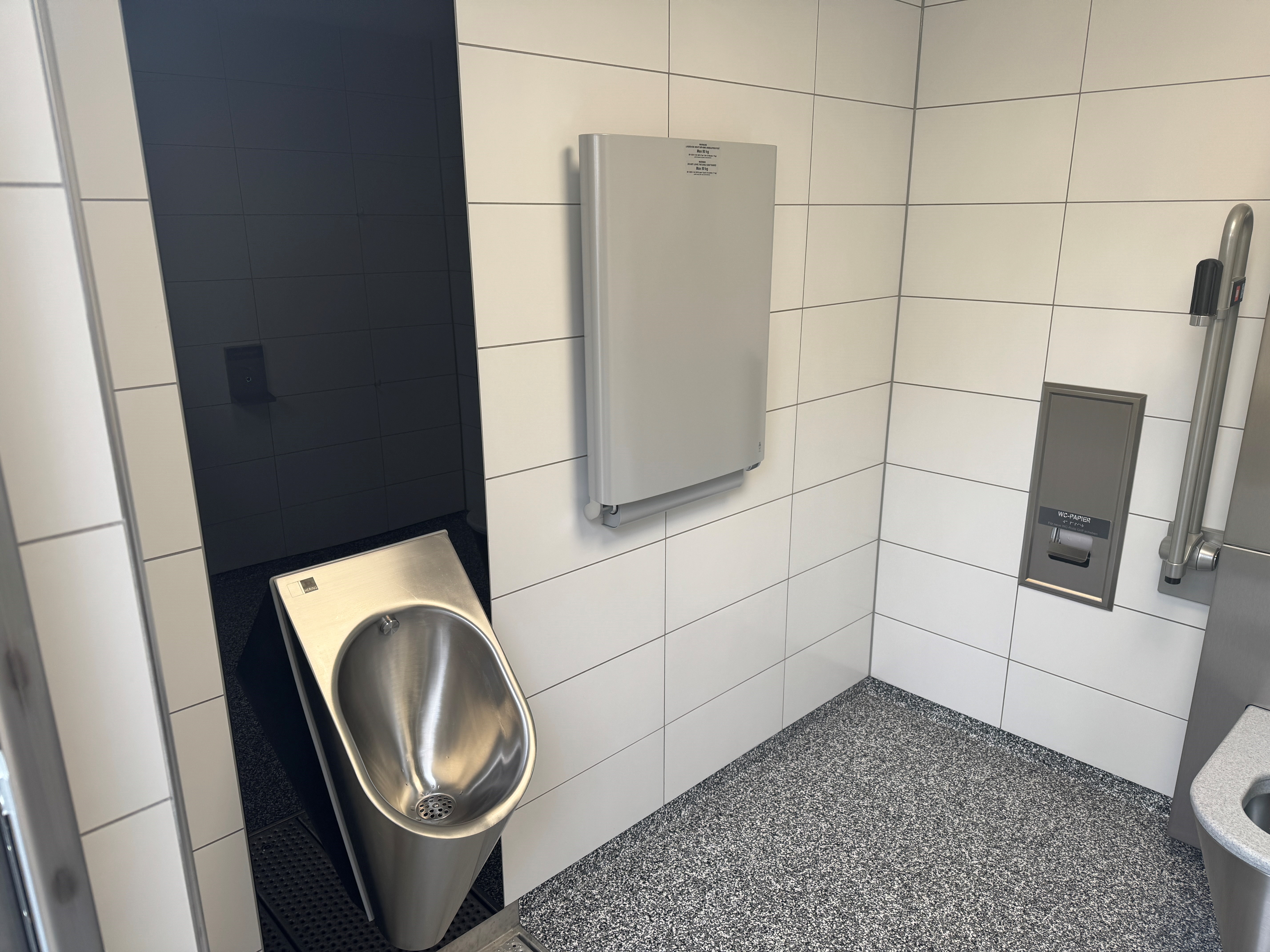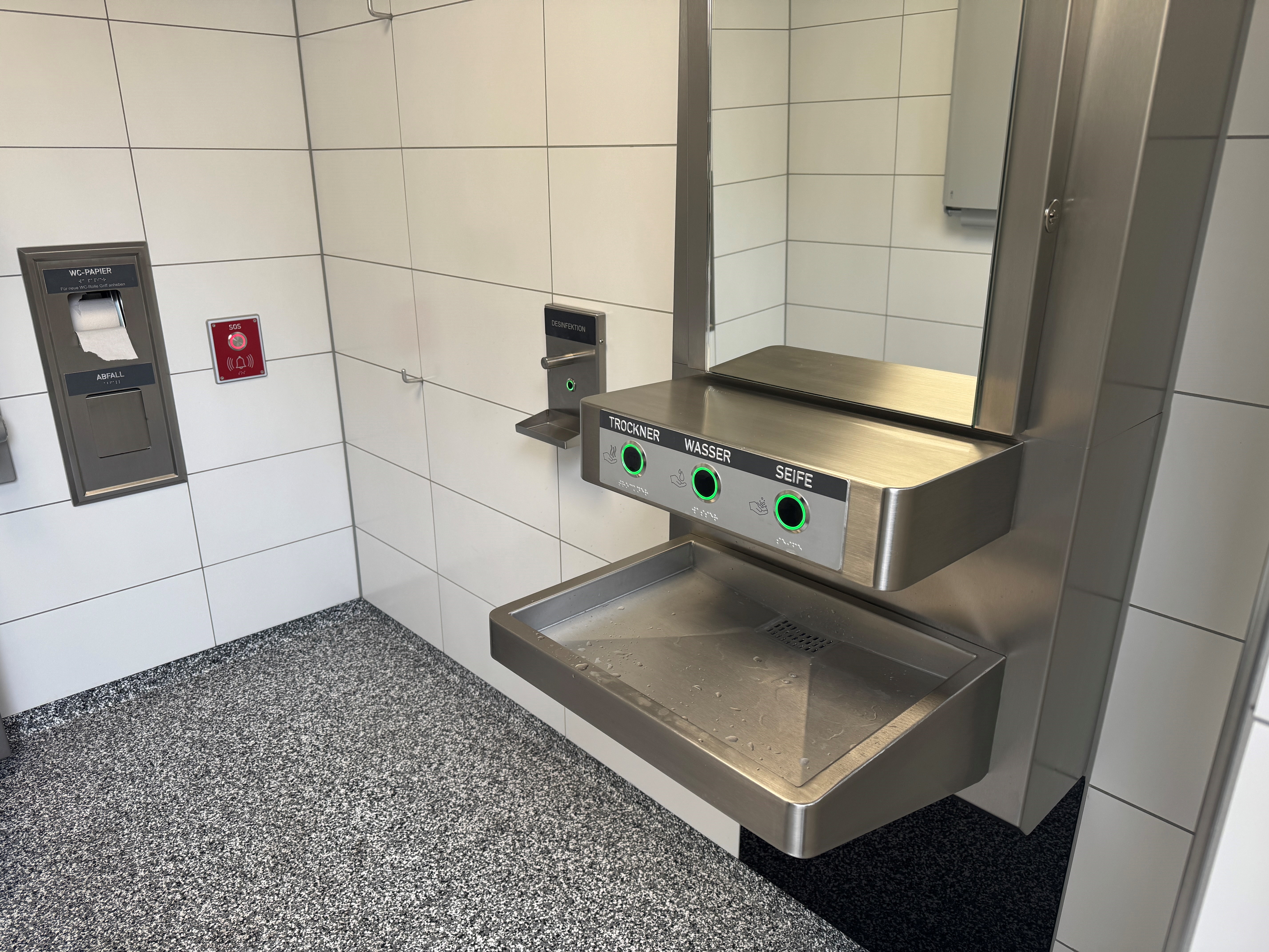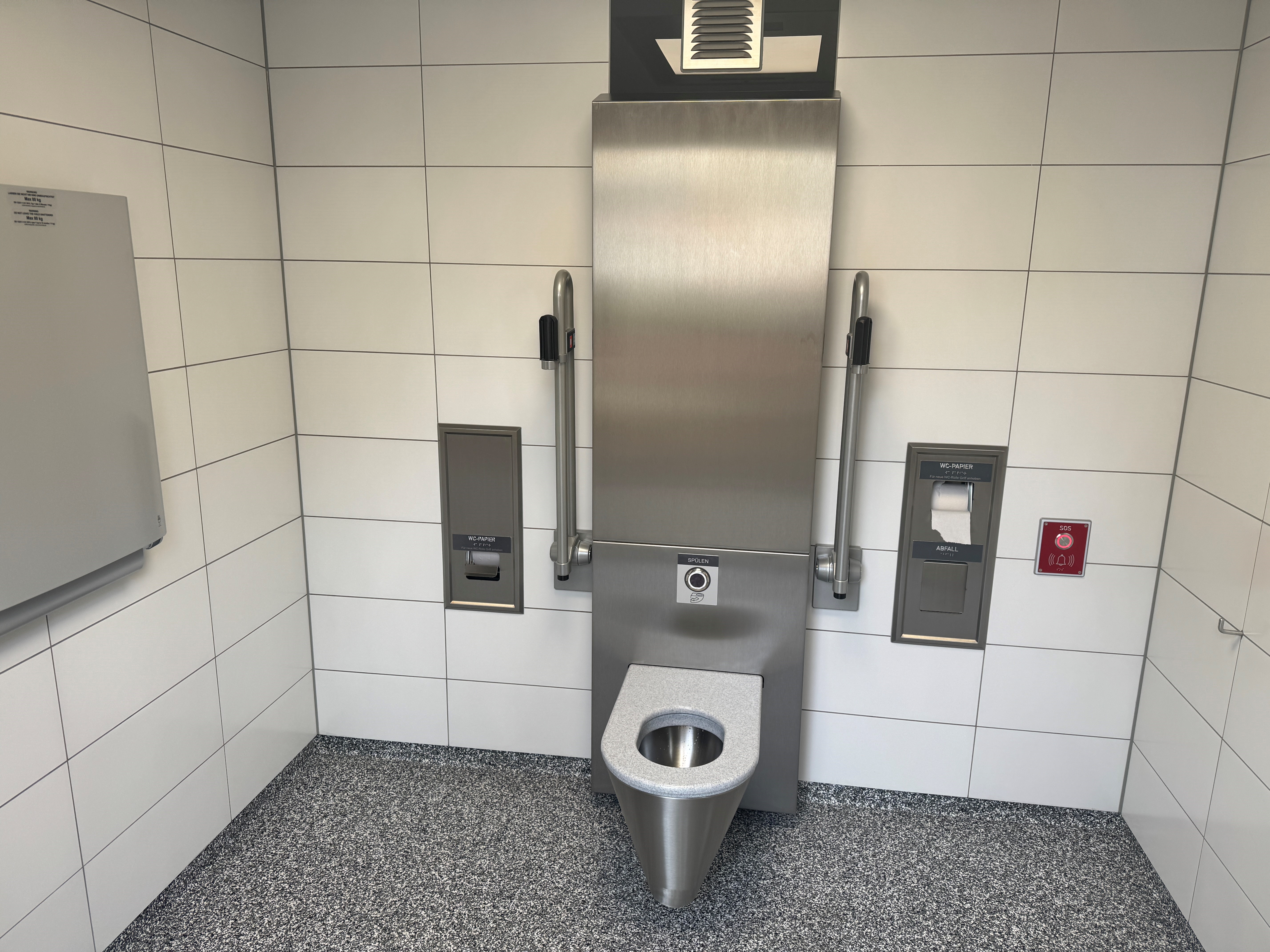 Für ein hohes Maß an Hygiene sorgt ein automatisches Reinigungssystem: WC und Urinal werden nach jeder Nutzung selbstständig gereinigt. Zusätzlich erfolgt einmal täglich eine umfassende Reinigung der gesamten Anlage. Eine integrierte Bodenheizung verhindert an kalten Tagen die Bildung von Kondenswasser.