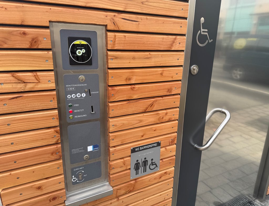 Die City-Toilette ist barrierefrei zugänglich, verfügt über eine Wickelmöglichkeit für Eltern mit Kleinkindern und steht rund um die Uhr zur Verfügung. Die Benutzungsgebühr beträgt 0,50 €. Dabei ist sowohl Bar- als auch Kartenzahlung möglich. Ein Anzeigesystem informiert darüber, ob die Toilette frei, besetzt oder gerade in Reinigung ist.