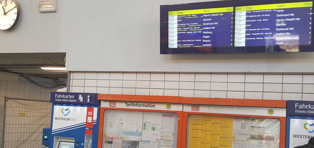 Dafür eingesetzt hat sich Dimitrios Axourgos. Als Anfang 2019 die große Informationstafel im Bahnhofsgebäude demontiert wurde, hatte der Bürgermeister in zahlreichen Gesprächen mit Bahnreisenden das Bedauern erfahren, das diese Maßnahme hervorgerufen hat. Die Tafel, die bis dahin vom Zweckverband Ruhr-Lippe (ZRL) betrieben wurde, war defekt und auch nicht mehr zu reparieren. Dimitrios Axourgos machte sich in Gesprächen mit dem Bahnhofsmanagement Dortmund stark für einen adäquaten Ersatz. Und es dauerte nicht lange, bis Jörg Seelmeyer, Leiter des Bahnhofsmanagements in Dortmund, signalisierte: "Für die Installation des Zug-Info-Monitores sieht es gut aus."