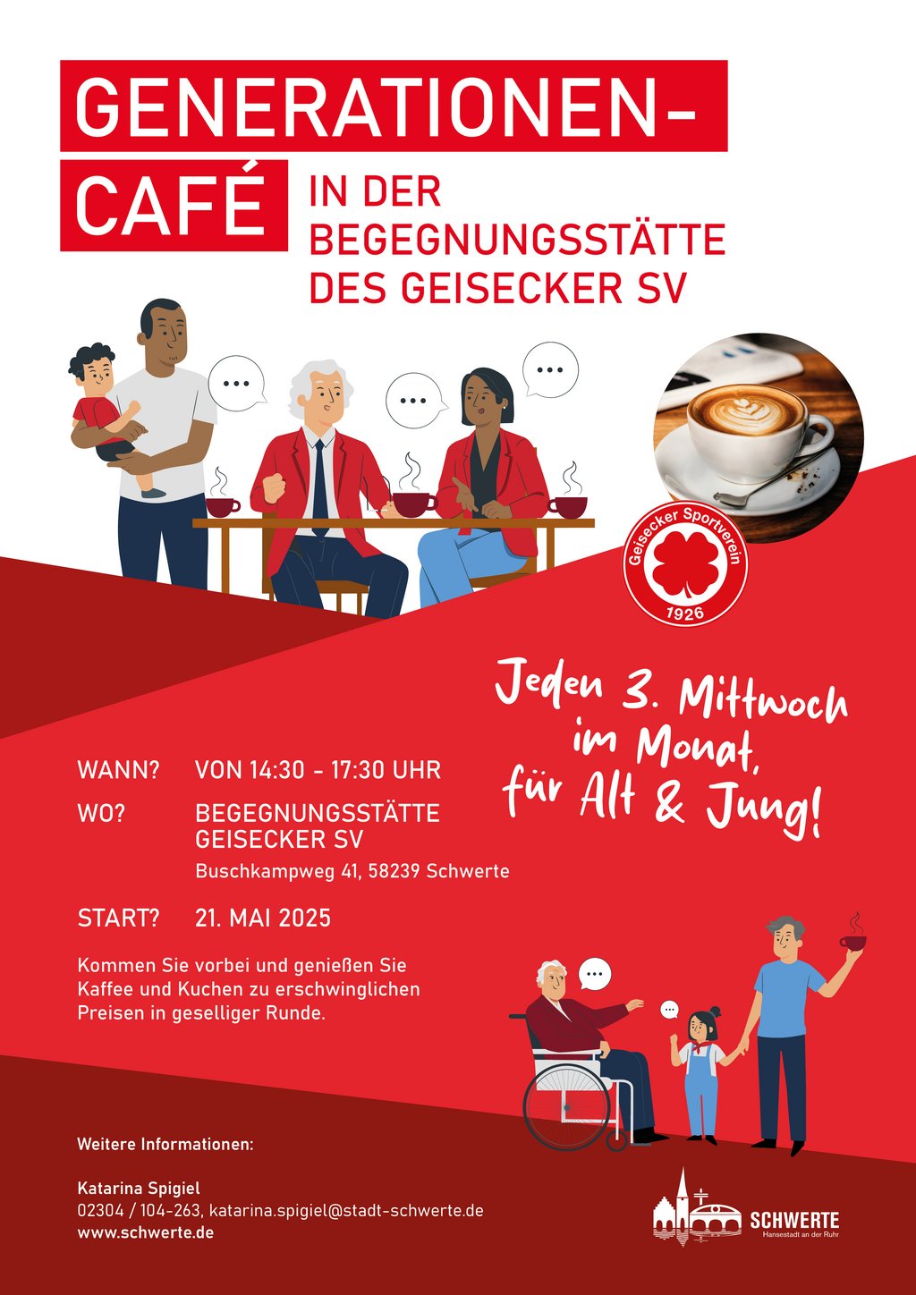 Das Generationencafé richtet sich insbesondere an Senior*innen, steht aber Menschen aller Altersgruppen offen. In gemütlicher Atmosphäre bei Kaffee und Kuchen bietet es Raum für Begegnung, Austausch und neue Bekanntschaften. Ziel ist es, den Dialog zwischen den Generationen zu fördern und eine soziale Anlaufstelle zu schaffen, in der sich Besucher*innen wohlfühlen und aktiv am Gemeinschaftsleben teilnehmen können.