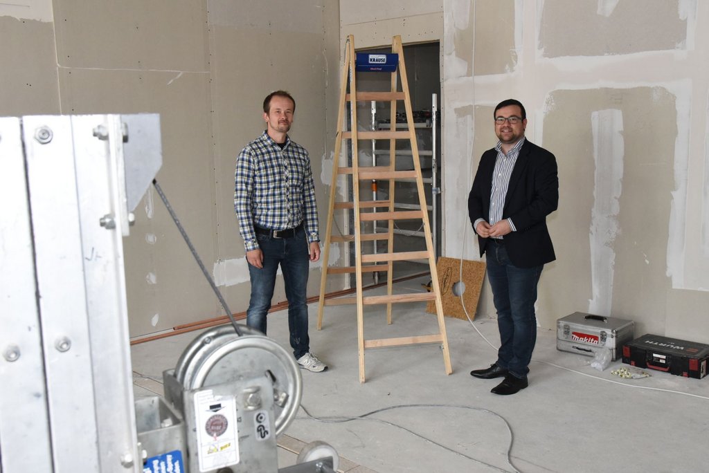 Gemeinsam mit dem zuständigen städtischen Architekten Andreas Großmann besuchte der Verwaltungschef den dreigruppigen Neubau, in dem der Innenausbau auf vollen Touren läuft. Im Zuge des Neubaus entsteht u.a. eine Aufwärmküche und ein Mehrzweckraum. Viele Fenster werden für lichtdurchflutete Räume sorgen, die großzügig geschnitten sind. 110 Kinder finden dort ihren Platz.