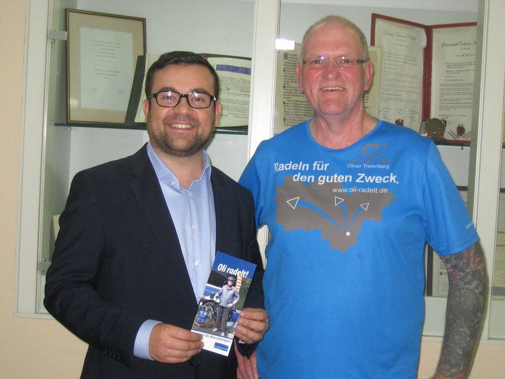 "Ich finde es beachtlich, dass Oliver Trelenberg hohe körperliche Anstrengungen in Kauf nimmt, um anderen Menschen zu helfen. Diesen uneigennützigen Einsatz finde gut", so Bürgermeister Dimitrios Axourgos.