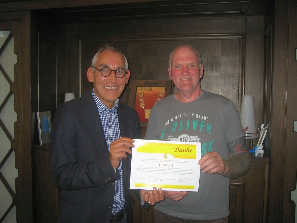 Im Jahr 2013 war Oliver Trelenberg selbst an Kehlkopfkrebs erkrankt. Mit seinen Radprojekten möchte er Menschen mit ähnlichen Schicksalen ermutigen. "Ich habe vor Oliver Trelenberg größten Respekt. Mit seinem Engagement leistet er wichtige Unterstützung für eine sinnvolle Aktion. Und er macht durch seine Leistung kranken Menschen Mut", sagte Bürgermeister Heinrich Böckelühr. Oliver Trelenbergs erradelte Gesamtsumme 2016 und 2017 beträgt im Übrigen beachtliche 13.239 Euro.