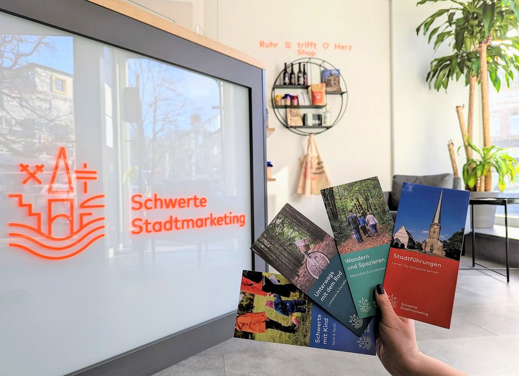 „Viele Besucher*innen der Stadt- und Touristinformation bevorzugen weiterhin die Mitnahme gedruckter Informationsmaterialien. Bei der Entwicklung der Broschüren wurde jedoch ebenfalls die Einbindung digitaler Verknüpfungen berücksichtigt“, erklärt Angelika Goczol. Die gedruckte Version der Broschüren sind in der Stadt- und Touristinformation am Postplatz 8 kostenlos zum Mitnehmen erhältlich, digital sind sie auf der Website des Schwerte Stadtmarketing zum Download verfügbar.