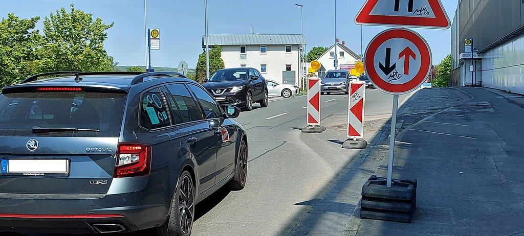 Es geht um eine kleine Stelle direkt vor dem Stahlwerk Ergste. Dort ist die Fahrbahn abgesackt und beschädigt. Schon zweimal hat der für Bundesstraßen zuständige Landesbetrieb versucht, die Stelle auszubessern – allerdings ohne dauerhaften Erfolg. Seitdem ist der Bereich mit zwei Absperrbaken und Verkehrsschildern abgesichert, was durch den Gegenverkehr zu Beeinträchtigungen im Verkehrsfluss geführt hat. Das hatte immer wieder zu Verärgerungen bei Verkehrsteilnehmer*innen geführt. Am Ende hatte sich sogar Bürgermeister Dimitrios Axourgos eingeschaltet.