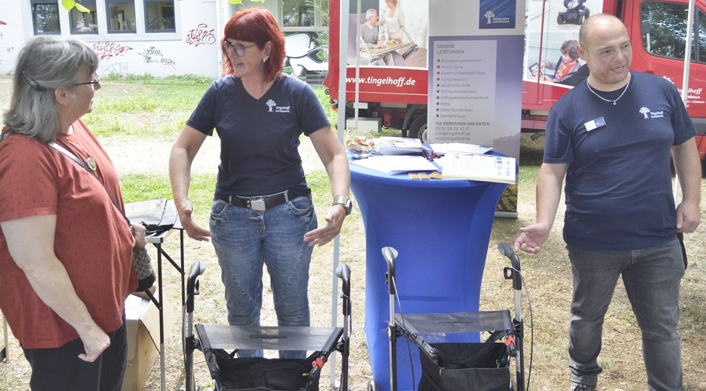 Das Stadtoberhaupt dankte in diesem Zusammenhang dem ehemaligen stellvertretenden Bürgermeister Jürgen Paul für sein Engagement. Der Rollatortag ist mittlerweile zu einer festen Einrichtung im Veranstaltungskalender der Stadt geworden und lockte auch am Samstag wieder zahlreiche Schwerter*innen zum Ort des Geschehens, wo viele Institutionen Rat und Tat anboten. Dazu gehörten das Medical-Center und die Sanitätshäuser Kraft und Tingelhoff als Mitveranstalter.