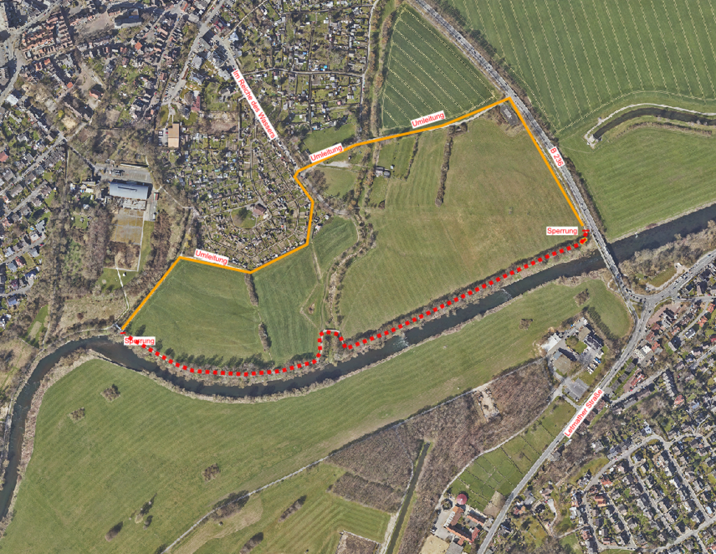 Schwerte. Die Stadtentwässerung Schwerte wird am Montag, den 6. März 2023, und am Folgetag, den Ruhrtalradweg zwischen Mühlenstrang und Bethunestraße (B236) sperren. Grund für die Sperrung sind Kanalreinigungs- und Inspektionsarbeiten mit der die Firma Kanal-Türpe GmbH beauftragt worden ist. Die Radwegumleitung ist entsprechend ausgeschildert.