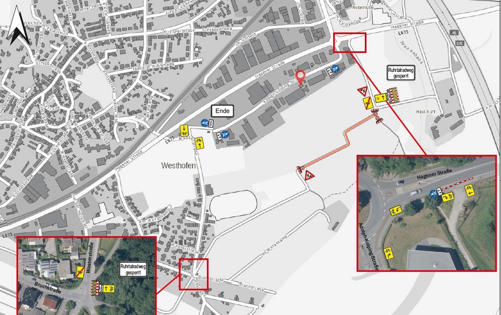 Die Bauarbeiten beginnen schon am kommenden Rosenmontag (24. Februar). Sie sind bis zum 16. März terminiert. In dieser Zeit ist der Ruhrtalradweg gesperrt. Radfahrer*innen werden in Fahrtrichtung Hengsteysee kurz hinter der Brücke bei Haus Ruhr ein Stück in nördlicher Richtung zur Hagener Straße geführt und dann über die Adolph-Kolping-Straße und die Wasserstraße zur Bruchstraße. Von dort aus geht es wieder auf den Ruhrtalradweg.