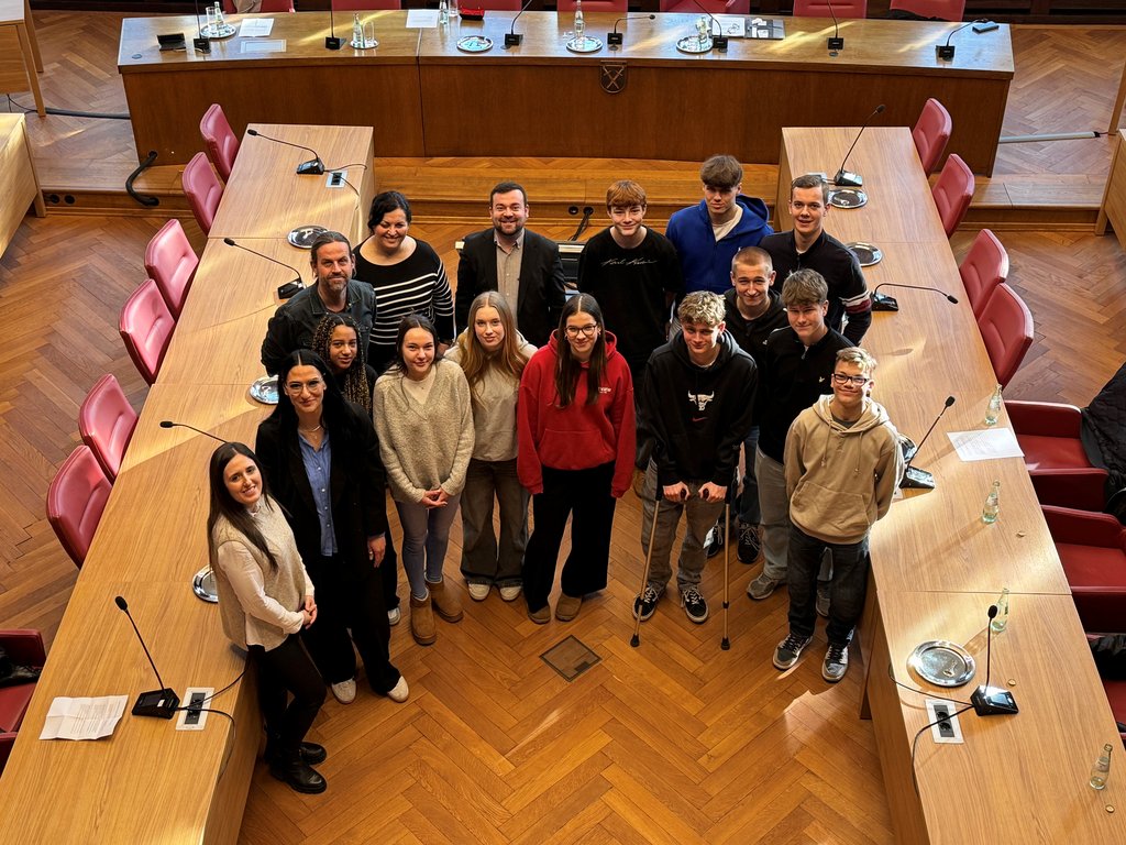 Um mehr über die konkreten Arbeitsfelder des Integrationsrates zu erfahren, suchten die Schüler*innen das Gespräch mit Bürgermeister Dimitrios Axourgos sowie Aynur Yavuz, der ehemaligen Vorsitzenden des Integrationsrates. Das Stadtoberhaupt lud die Gruppe ins Rathaus ein, wo sich in einer offenen Atmosphäre ein angeregter Austausch entwickelte und auch von eigenen Erfahrungen berichtet wurde. Die Schüler*innen stellten ihre Fragen, diskutierten über die Bedeutung von Integration und erfuhren aus erster Hand, wie sich die Stadt Schwerte für eine gelingende Integration engagiert.