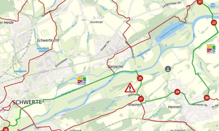 Nach eingehender Überprüfung kam die Stadt Schwerte aber zu dem Ergebnis, dass kilometerlange Abschnitte, die in den letzten Jahren von der Stadt Schwerte aufwendig und ressourcenintensiv hergestellt wurden, sowie die Schwerter Innenstadt und wichtige Anschlusspunkte durch die Umleitung ausgeklammert werden, die Umleitung somit nicht akzeptiert werden kann. Darüber informierte sie den RVR. Der hat nun nach eigenen Aussagen die Umleitung aber trotz Sicherheitsbedenken über die Ruhrtalstraße ausgeschildert.