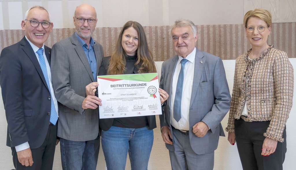 Die NRW-Initiative bietet im Zusammenschluss von mehr als 450 Behörden wichtige Hilfestellung für Sicherheit und Schutz von Beschäftigte im öffentlichen Dienst. Gewalt betreffe mittlerweile nahezu alle Bereich der Kommunalverwaltung, sagte NRW-Innenminister Herbert Reul. „Dabei zeigt sie sich in ihrer ganzen Bandbreite: Von Beleidigungen über verbale Attacken bis hin zu körperlichen Angriffen oder Sachbeschädigung“, machte der Minister deutlich. Erst in diesem Jahr hatten in Schwerte verbale Bedrohungen zu besonderen Maßnahmen im Rathaus „Am Stadtpark“ geführt. „Alleine diese Situationen haben uns die Entscheidung zum Beitritt leicht gemacht“, erklärt Dirk Wever. „Die Sicherheit unserer Mitarbeiter*innen genießt höchtse Priorität“.