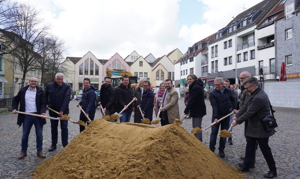Die Firma Prümer GmbH war beim gestrigen Spatenstich auch vor Ort und wird den Rückbau der vorhandenen Oberflächen übernehmen, während die Abdichtungsarbeiten auf der Tiefgarage von der STRABAG AG durchgeführt werden. Um die Bürger*innen über die Planung zu informieren, werden entsprechende Banner an den Bauzäunen angebracht, sobald die Baustelle eingerichtet ist. Zusätzlich stellt die Stadt Schwerte mit Baubeginn einen Flyer mit Informationen zur Baumaßnahme zur Verfügung, der in ausgewählten Ladenlokalen ausgelegt wird. Detaillierte Informationen zu Zugänglichkeiten, Sperrungen und Baustelleneinrichtungen können den Bauabschnittsplänen auf der Projektwebsite (Mitten in Schwerte (mitten-in-schwerte.de) entnommen werden, die regelmäßig über den Fortschritt der Arbeiten informiert.