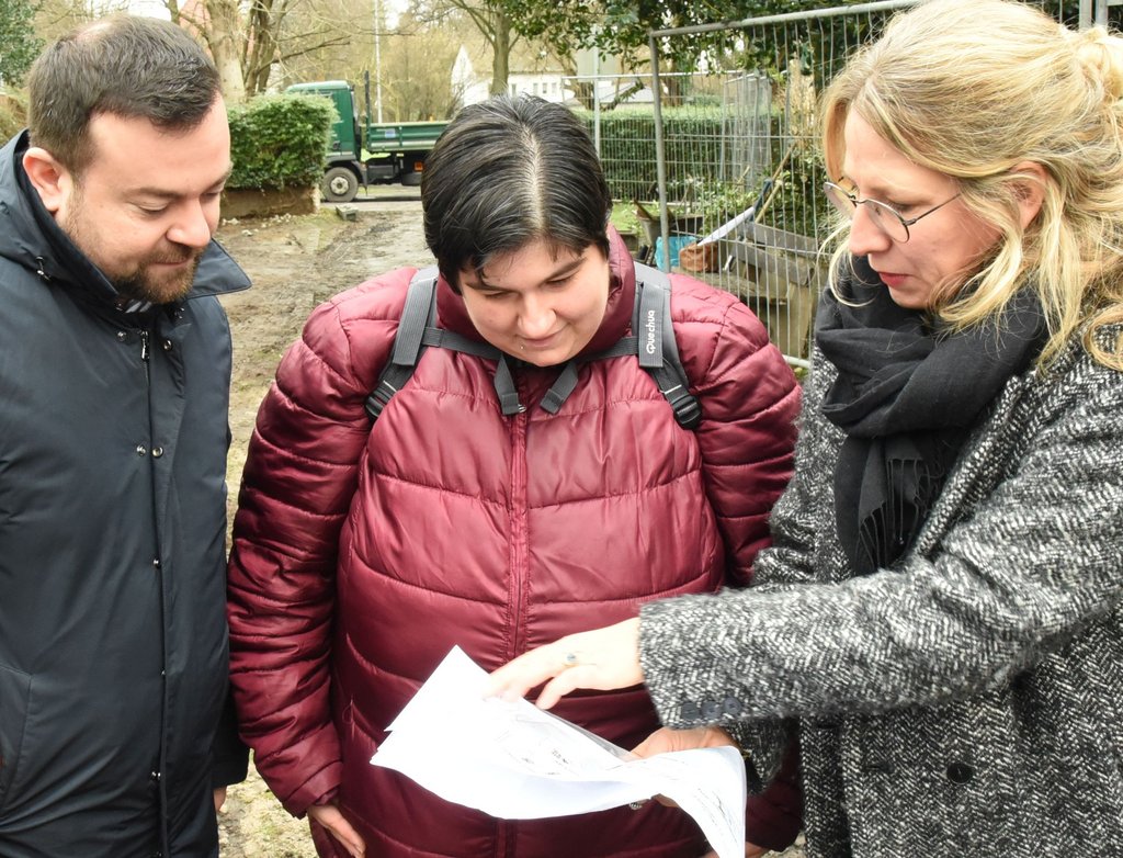Ausdrücklich begrüßte sie die Neugestaltung der Spielplatzfläche an der Poststraße und war ganz begeistert, als sie von der Installation eines Bodentrampolins erfuhr. „Dafür sind wir bisher immer bis Wandhofen gelaufen“, sagte Sabrina Vogt. Das wird bald nicht mehr nötig sein. In zehn bis zwölf Wochen wird der neue Spielplatz in ihrer Nachbarschaft fertig sein, der dann mit der Calisthenicsanlage und dem Bolzplatz eine wunderbare Einheit sein wird.