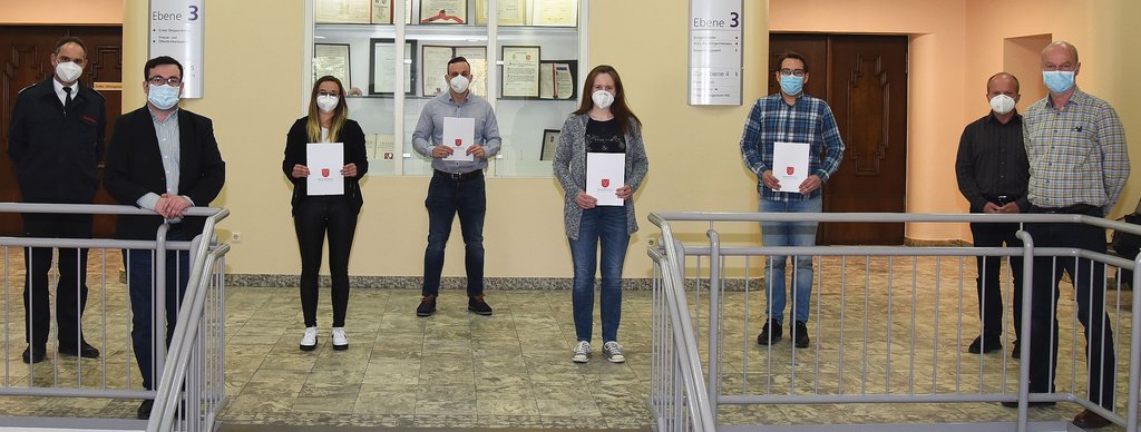 Bürgermeister Dimitrios Axourgos wünschte den kommenden Brandmeister*innen alles Gute für die Ausbildung und freute sich, dass die vier jungen Menschen ihren Beitrag dazu leisten wollen, den hohen Sicherheitsanspruch, den die Stadt mit Blick auf ihre Bürger*innen hat, zu untermauern.