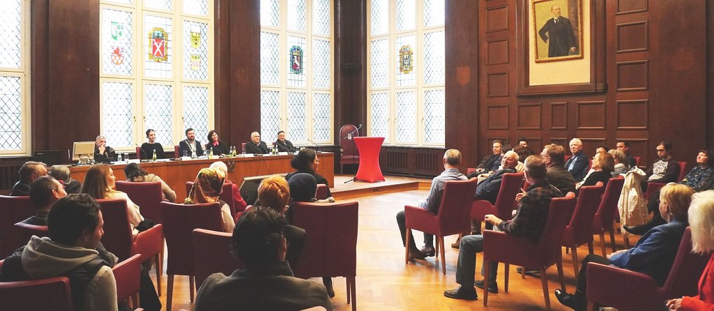 Bevor der Bürgermeister mit diesen Worten im Ratssaal offiziell begrüßte, stimmten Izel Cam und Rana Uzungüngör mit internationalen musikalischen Beiträgen auf die Feierstunde ein. Beide Frauen haben einen Migrationshintergrund und sind stolz auf den Mut ihrer Vorfahren, in einem fremden Land einen Neuanfang zu wagen. Zu den rund 50 anwesenden Besucher*innen gehörte auch Kenan Karanfil; er ist der erste türkischstämmige Gastarbeiter in Schwerte gewesen und kam im November 1961 mit dem Zug in die Ruhrstadt.