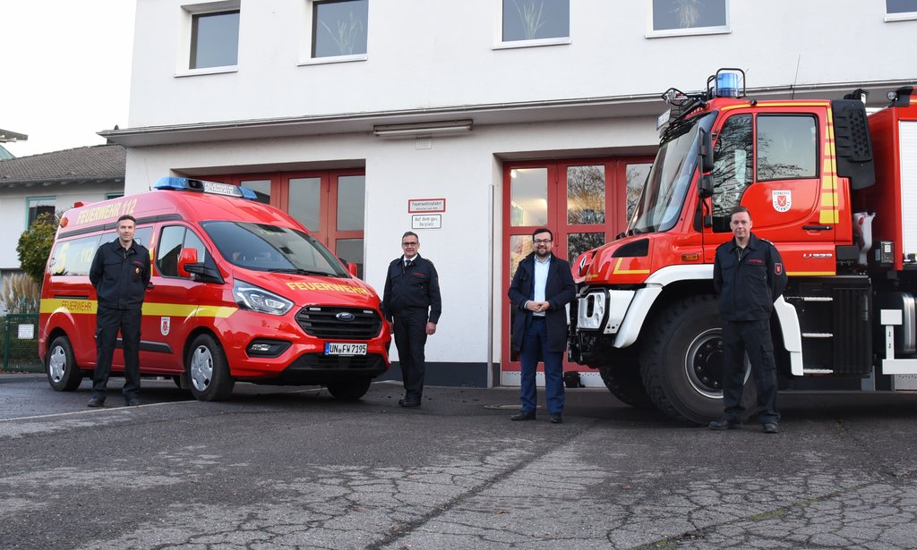 Die zwei neuen Fahrzeuge stehen im Feuerwehrgerätehaus in Ergste. Das Tanklöschfahrzeug mit dem Unimog-Fahrgestell U323 ist das erste seiner Art, weil es genaustens auf die Anforderungen der Feuerwehr gebaut worden ist und es so noch nicht gab.