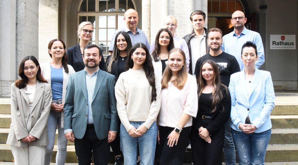 Anwesend waren die künftigen Verwaltungsfachangestellten Yasemin Gürbüz, Elif Karaca, Sara Men, Yagmur Sarsilmaz und Burdzhu Veli, die Bachelor auf Laws Sabrina Granson und Sven Gulich sowie Melina Haffki, die eine PiA-Ausbildung absolviert. Ferner wurden sieben weitere Auszubildende eingestellt, sechs Notfallsanitäter*innen und ein Systemadministrator.