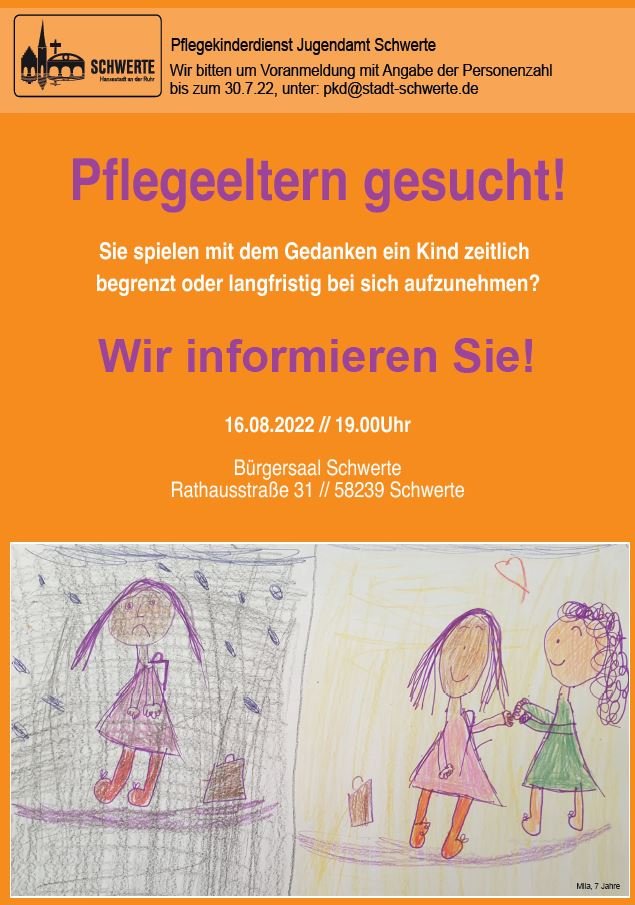 Der Pflegekinderdienst im Jugendamt der Stadt Schwerte sucht Pflegeeltern, die Pflegekindern ein neues Zuhause geben möchten. Die Stadt Schwerte gibt am 16. August Antworten auf Fragen, wer ein Pflegekind aufnehmen kann, wie die rechtliche Situation von Pflegekindern und -eltern ist und welche Unterstützung das Jugendamt gibt.