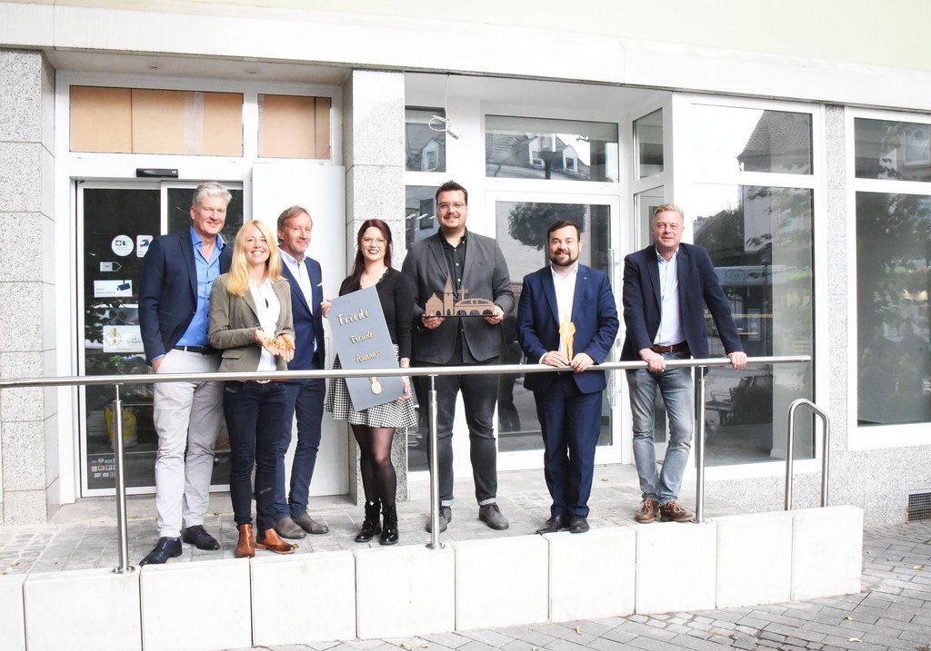 „Moke Style“ heißt das Geschäft, das neben dem Stadtmarketing und dem Tourismusbüro eröffnen wird und das besondere und individuelle Geschenkideen auf der Grundlage von Lasertechnik anbietet. „Ich freue mich sehr und danke für die Chance, dass wir hier unseren Traum verwirklichen können“, sagte eine strahlende Monja Schnorr, die gemeinsam mit ihrem Mann Kevin Achtzehn das Geschäft betreiben wird. Bürgermeister Dimitrios Axourgos ließ es sich nicht nehmen, persönlich Willkommensgrüße auszusprechen. Man sei bislang mit dem übergeordneten Konzept im Kampf gegen Leerstände sehr erfolgreich gefahren, wünschte Monja Schnorr und Kevin Achtzehn alles Gute und dankte den Eigentümer*innen Friederike und Martin Kleine sowie Markus Hlubek, dass sie „viel Power, Zeit und Kraft in dieses Projekt gesteckt haben“.