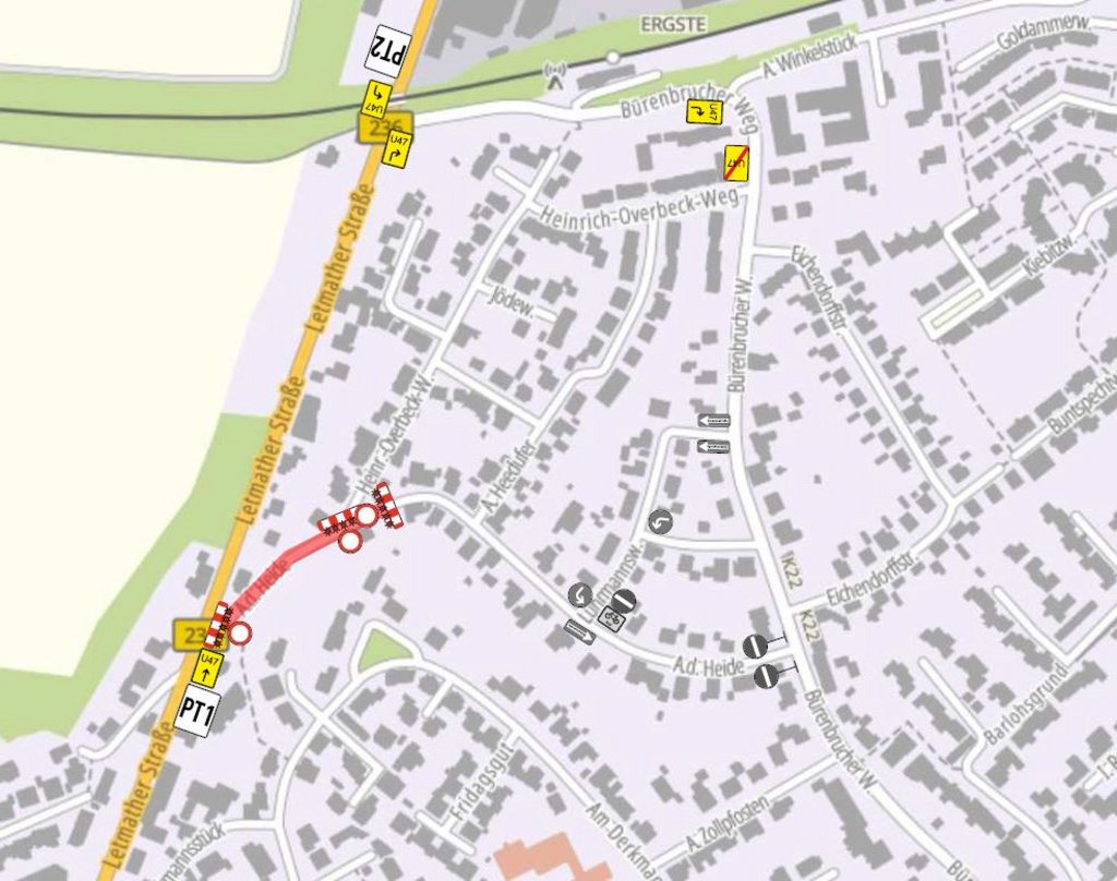Ergste. Weil Versorgungsleitungen neu verlegt werden müssen, ist die Straße “Auf der Heide” in Ergste einen Monat lang bis hinter die Einmündung Heinrich-Overbeck-Weg gesperrt. Eine Durchfahrt zum Bürenbrucher Weg ist in dieser Zeit nicht möglich. Die Arbeiten beginnen am 20. Januar 2025 und enden am 21. Februar 2025. Eine Umleitung ist eingerichtet.