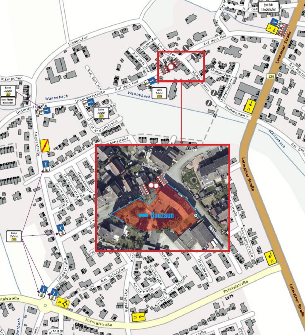 Nötig werden die Straßensperrungen in Ergste, weil die Hausanschlüsse für den neuen Wohngebäudekomplex am Standort der ehemaligen Gaststätte „Haus Schneider“ gemacht werden müssen. Das passiert zunächst „Auf dem Hilf“. Sind die Bauarbeiten hier fertig, wird der Mühlendamm aus dem gleichen Grunde gesperrt.