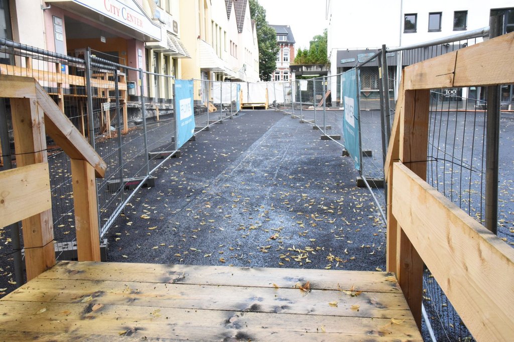 Der Weg ist allerdings nicht barrierefrei. Der barrierefreie Zugang zum Wuckenhof führt weiterhin über die bestehende Umleitung entlang der St. Viktorkirche und der südlichen Lindenreihe.