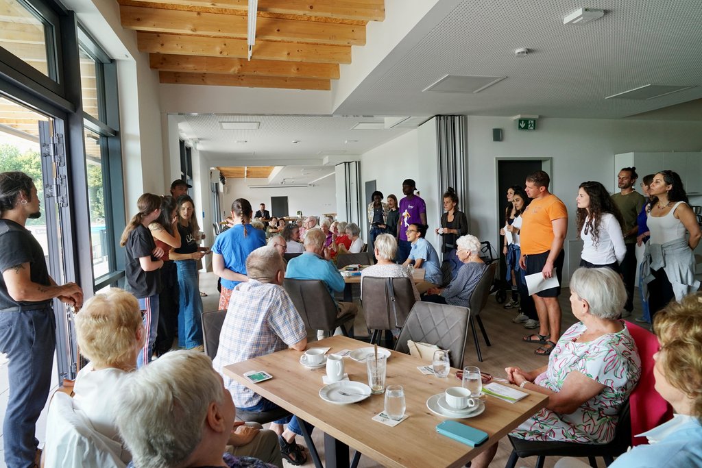 Zu den Gästen zählte dieses Mal das internationale Theater-Ensemble STUDIO 7 aus Schwerte. Die Künstler*innen führten musikalische Beiträge auf und mischten sich anschließend unter die Besucher*innen. Das Ensemble wird in Kürze auch beim „Welttheater der Straße“ auftreten – mit einer kollektiven Reflexion über die Fragilität des Lebens, gestaltet durch Theater, Gesang und Poesie.