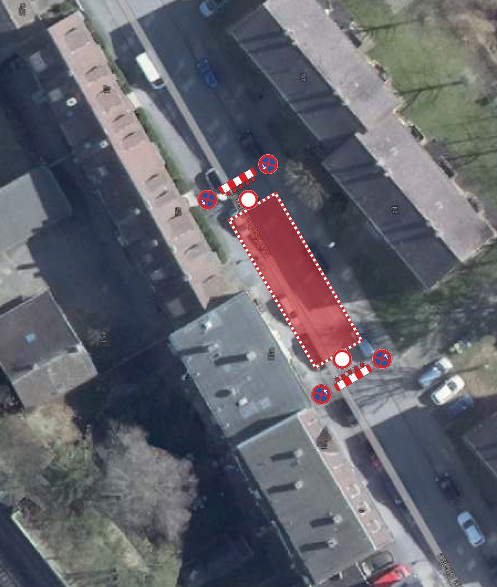Der Straßenverkehr wird über den Kirschbaumsweg und die Bergische Straße umgeleitet. Eine entsprechende Beschilderung ist eingerichtet. Fußgänger können den Bereich weiterhin passieren.