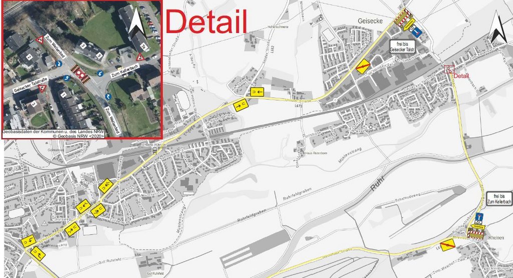 Der Rohrbruch wurde im Bereich „Zum Wellenbad“, Geisecker Talstraße und der Straße „Zum Kellerbach“ entdeckt und macht ein schnelles Handeln erforderlich. Die Sperrung der Durchfahrt ist dabei unabdingbar. Wer von der Unnaer Straße aus Richtung Wellenbad fährt, kann künftig nur noch nach rechts in die Geisecker Talstraße einfahren. Von dort ist das Abbiegen nach links weiterhin möglich. Aus der anderen Richtung lässt sich noch nach rechts in den Kellerbach einbiegen. Auch von dort aus lässt sich weiterhin nach links Richtung Wellenbad fahren.