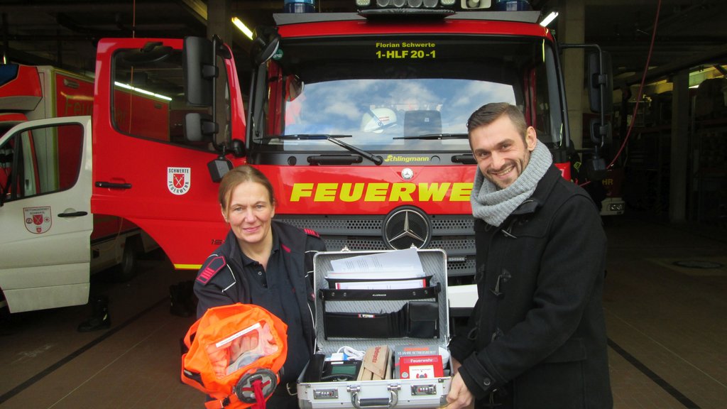 "Der Brandschutzkoffer hilft, Kinder für Brandgefahren zu sensibilisieren. Er ist damit ein wichtiges Werkzeug für eine praxisnahe und anschauliche Brandschutzerziehung vor Ort", erläutert Provinzial Geschäftsstellenleiter Michael Kern. Neben einem Rauchwarnmelder enthält der Koffer auch ein Notruftelefon sowie weitere kindgerechte Lern- und Infomaterialien. "Mithilfe des Koffers erfahren die Kinder alles über den sicheren Umgang mit Feuer und üben, sich im Notfall richtig zu verhalten", ergänzt Petra Riße von der Feuerwehr Schwerte.