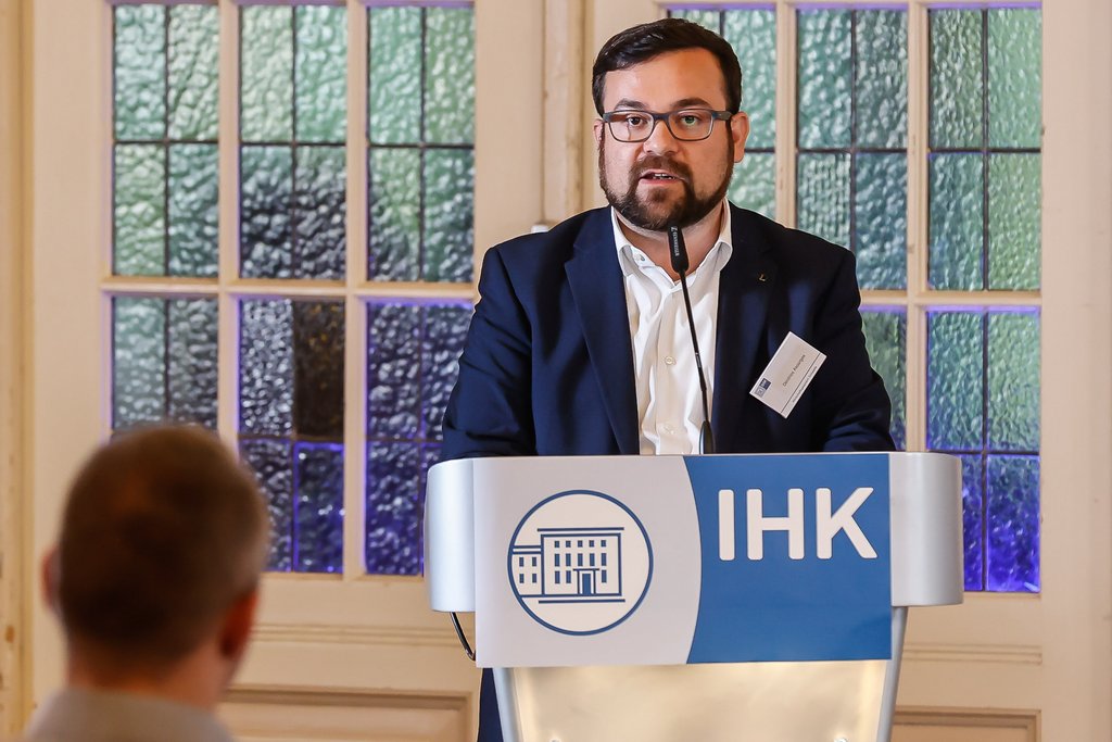 Der Bürgermeister unterstrich das große Interesse der Stadt, mit der heimischen Wirtschaft weiterhin ein engmaschiges Netz für eine effektive Zusammenarbeit zu knüpfen. Das schätzt die IHK. „Dimitrios Axourgos ist der erste Wirtschaftsförderer in seiner Stadt“, hob Stefan Schreiber, Hauptgeschäftsführer der IHK, hervor. Der Bürgermeister ging auf den Erwerb des rund 250.000 Quadratmeter großen Hoeschgeländes ein. „Mit der Unterschrift unter den Kaufvertrag haben wir einen entscheidenden Schritt für den Erhalt von 265 Industriearbeitsplätzen gemacht“, so Axourgos. Bildung, Klimaschutz, Digitalisierung und städtebauliche Entwicklungen waren weitere Schwerpunkte seiner Betrachtungen.