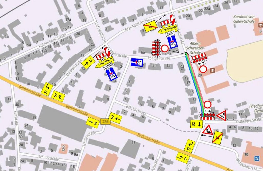 Schwerte. Voll gesperrt wird vom 14. bis zum 25. Oktober 2024 die Wittekindstraße zwischen Röntgenstraße und Ostberger Straße. In dieser Zeit finden im besagten Bereich Kanalbauarbeiten statt. Umleitungen sind eingerichtet und führen über die Graf-Adolf-Straße und die Bethunestraße.