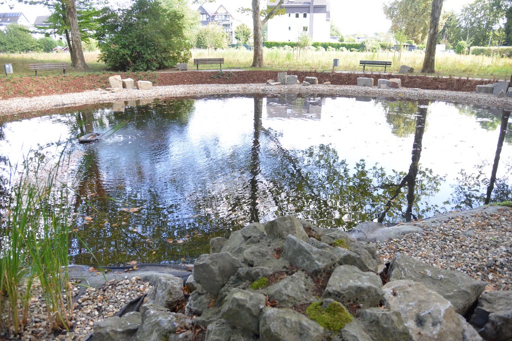 Verantwortlich für die Gestaltung der Außenanlagen war Alexander Mader, Leitung Baugewerke und Projektentwicklung der dia-service GmbH, einer Tochtergesellschaft der Diakonie Mark-Ruhr. Das Projekt wurde von den Auszubildenden Delia Hachmann und Saskia Heucks durchgeführt. Ganz ohne technischen Einsatz kamen die beiden aber nicht aus. So wurden neben dem neu modellierten Bachlauf ein Skimmer zu Reinigung der Oberfläche von organi-scher Masse und auch ein Aqua Air Sauerstoffspender verbaut, der die Wasserqualität deutlich verbessern soll.