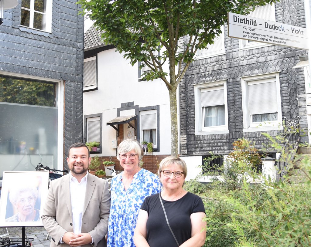 Erdmuthe Schulte, älteste Tochter Diethild Dudecks, sagte, dass sich ihre Mutter „sehr über die Würdigung ihre ehrenamtlichen Engagements gefreut hätte. Dieser Platz hätte ihr Gefallen, er lädt zum Verweilen und zum Zusammenkommen ein“. Das Wirken ihrer Mutter sei immer eine Mischung aus Tradition und Erneuerung „zum Mehrwert unserer Stadt und für das Wohl ihrer Bürger*innen“ gewesen. „Sie hat uns vorgelebt, dass Heimat nicht nur ein Ort, sondern auch ein Gefühl ist“.