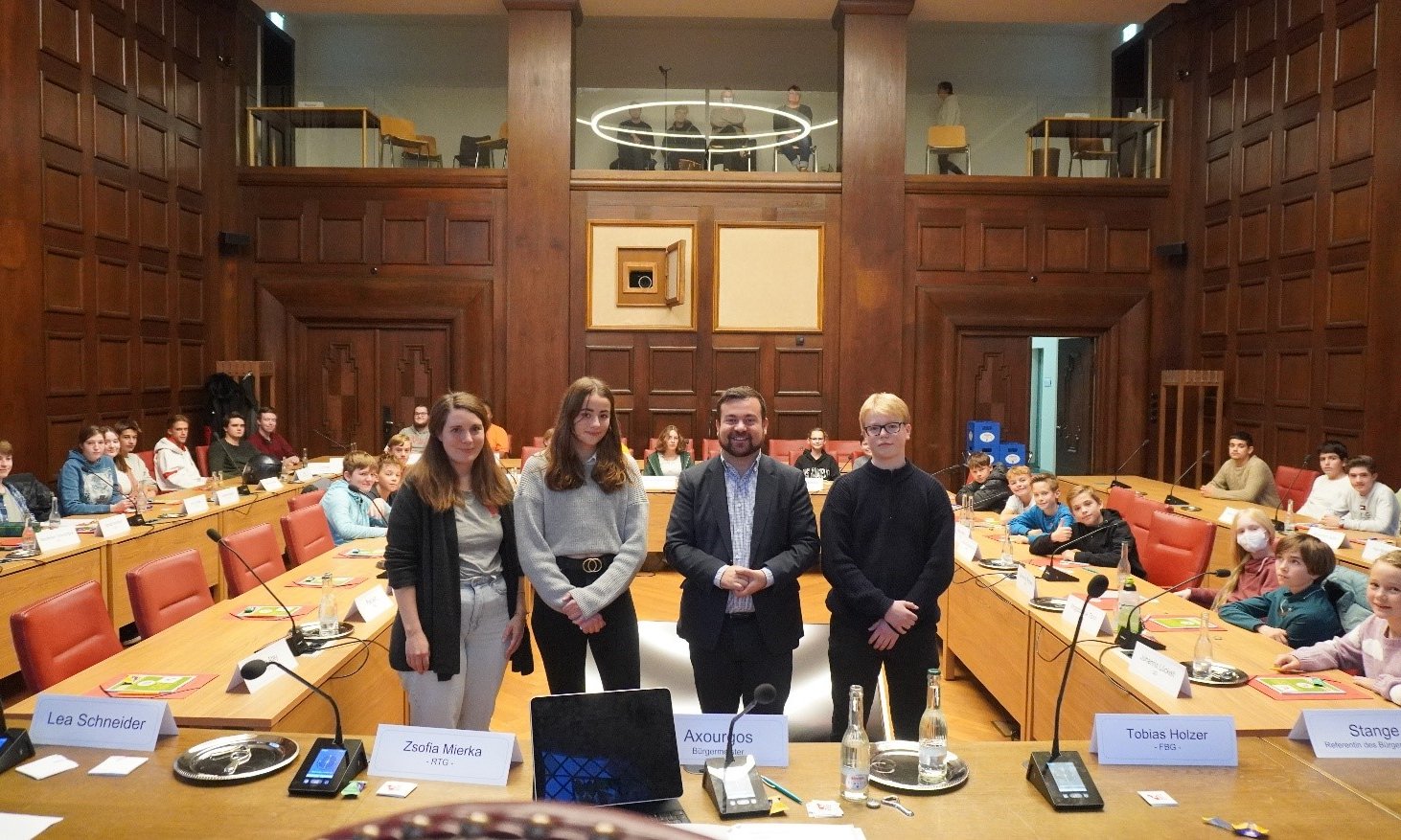 Mit einer hohen Einsatzbereitschaft zeigte sich das neue Kinder- und Jugendparlament in der ersten Sitzung im Ratssaal des Rathauses, als es um die ersten wichtigen Themen der neuen Amtsperiode ging. Nach der Begrüßung verpflichtete Bürgermeister Dimitrios Axourgos, der gleichzeitig Vorsitzender des KiJuPas ist, die neuen Mitglieder.