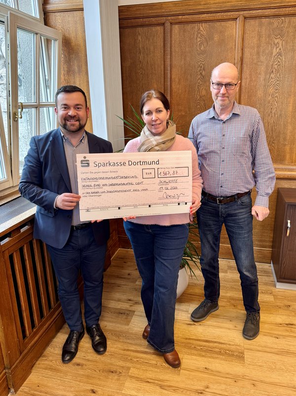 Mitarbeiter*innen der Stadt Schwerte haben erneut für einen guten Zweck gespendet. Bürgermeister Dimitrios Axourgos und Dirk Wever, Abteilungsleiter…