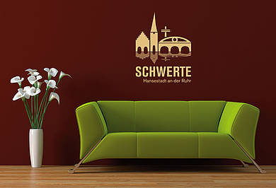 Das Logo von Schwerte als Wandtattoo zur Verschönerung auf allen glatten Wänden, Türen, Spiegeln, wo auch immer Sie sich Schwerte in der Stadtsilhouette ansehen möchten.